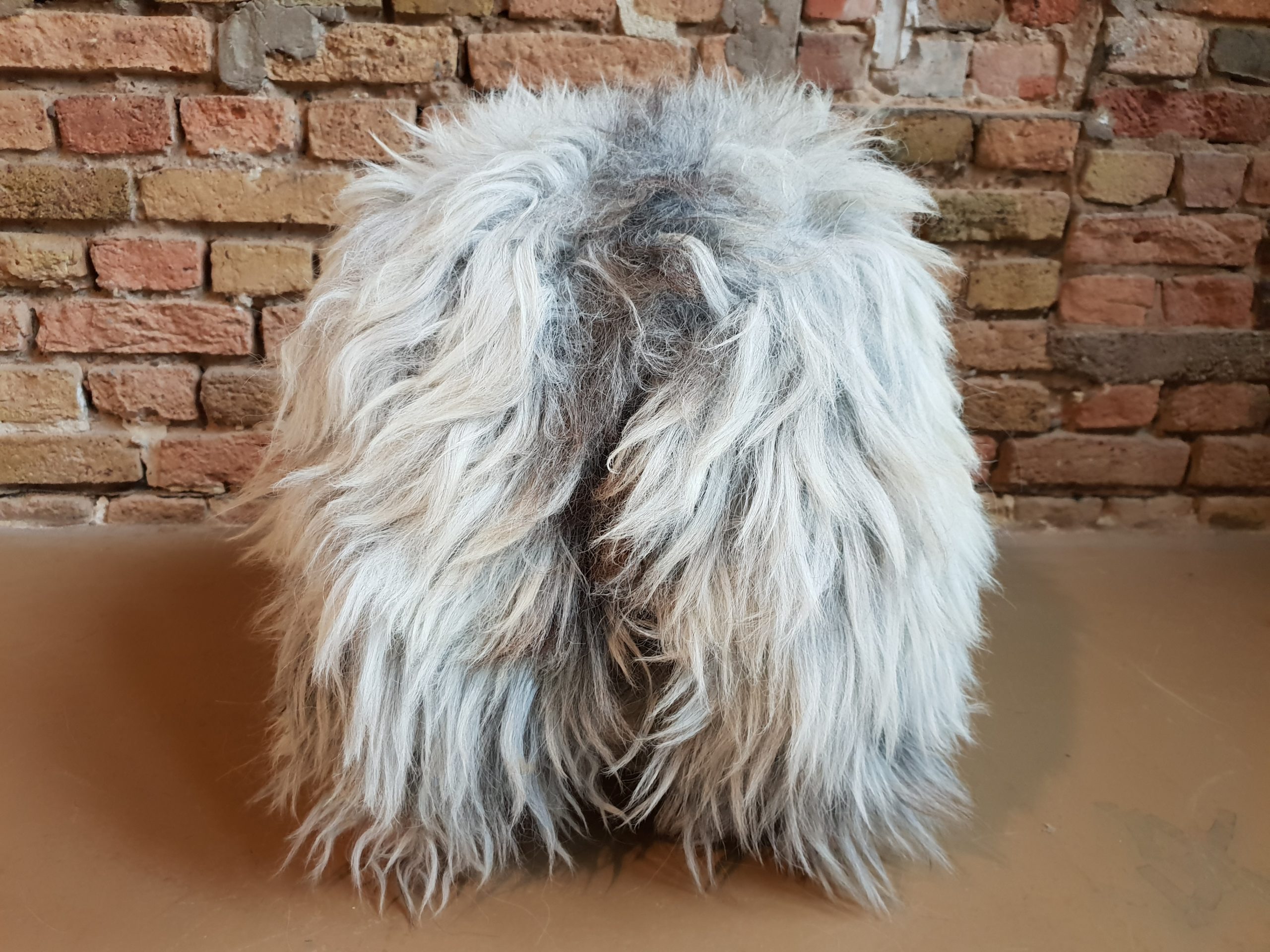 Ich bin Dein MainSchaf. Ich bin aus grauweißem Naturfell und regionalem Holz in Handarbeit mit sehr viel Liebe gefertigt.