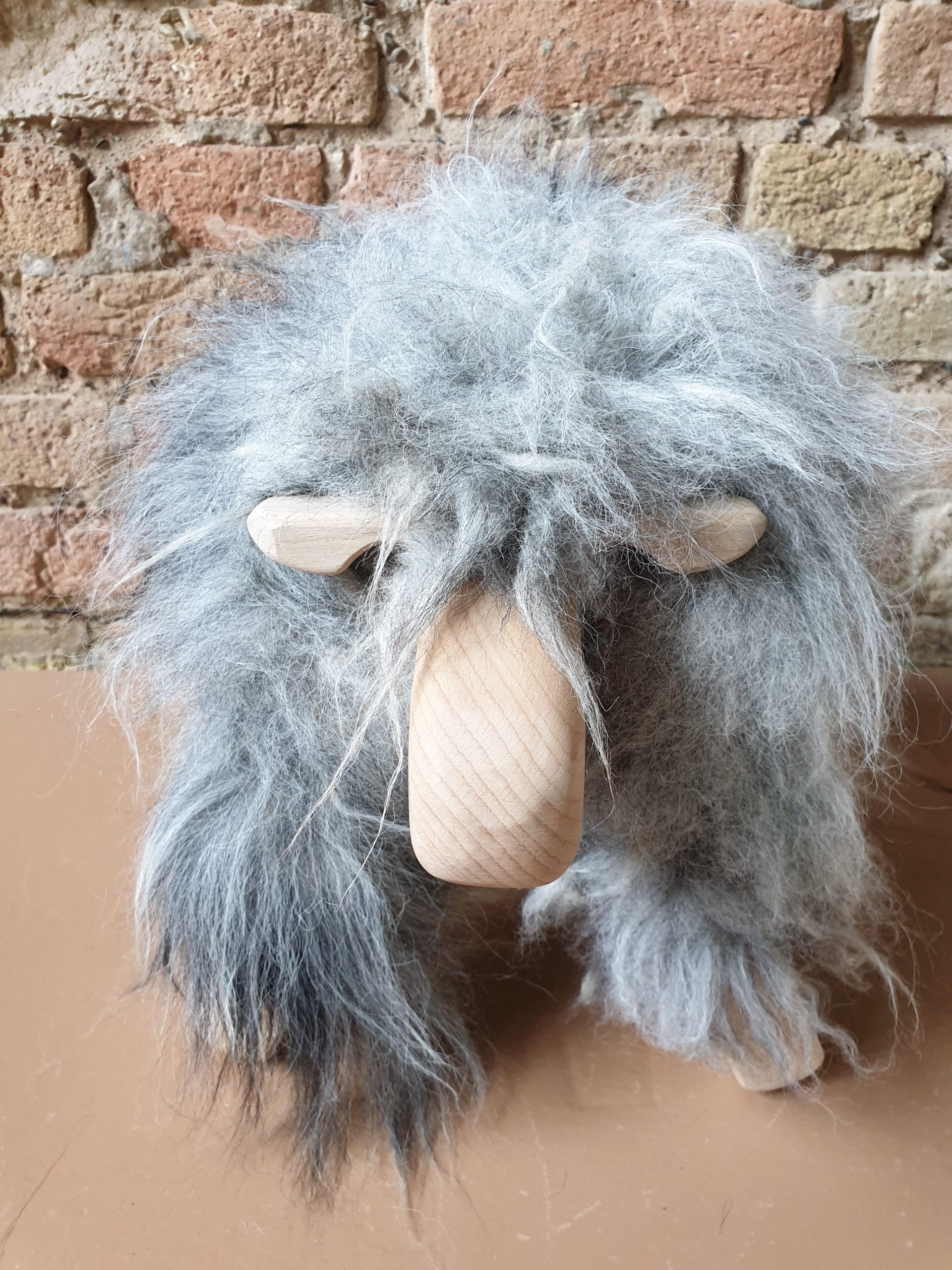 Ich bin Dein MainSchaf. Ich habe ein dunkel und hellgraues Naturfell und bin aus regionalem Holz in Handarbeit mit sehr viel Liebe gefertigt.